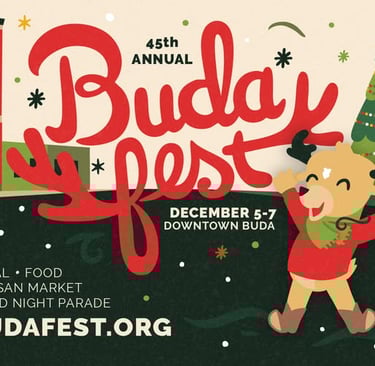 December 5-7 Friday 6pm - 9pm Saturday 12pm - 9pm Sunday 12pm - 5pm Buda, TX