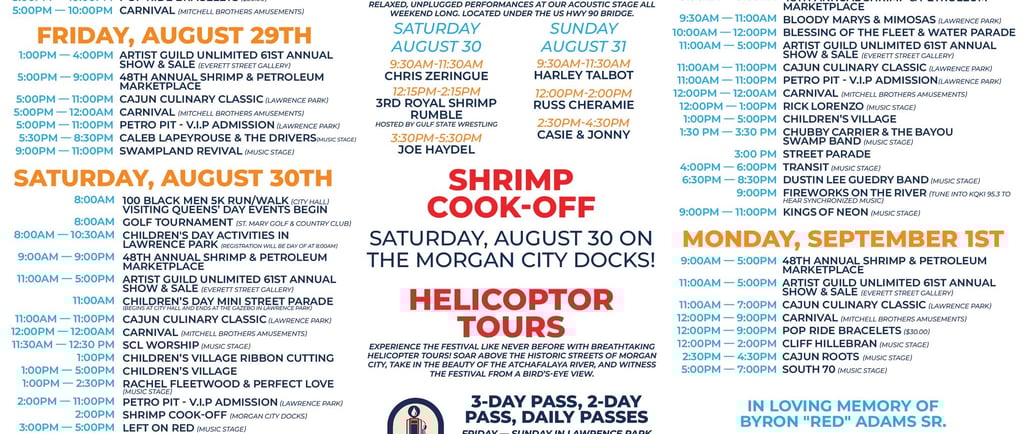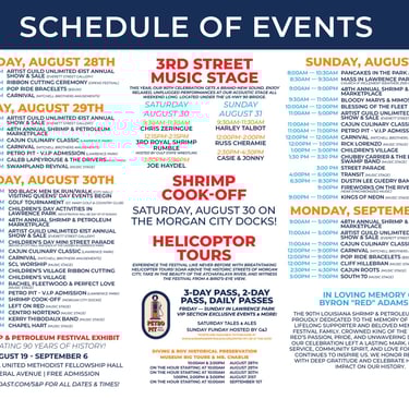 4 days outdoor festival in Morgan city, LA.